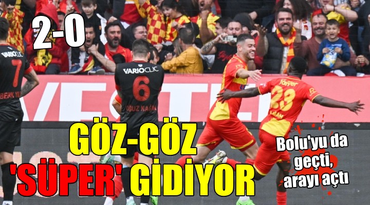 1’inci Lig’de ikinci sırada bulunan Göztepe, evinde formda rakibi Boluspor’u da rahat yendi, bitime 9 hafta kala en yakın takipçisiyle arasındaki puan farkını 7’ye çıkardı: 2-0. Gürsel Aksel Stadı’nda tıklım tıklım dolu tribünler önünde oynanan karşılaşmada ev sahibinin gollerini 45+6'ncı dakikada penaltıdan ve 49’uncu dakikalarda Romulo attı. Bu skorla ligde yenilmezlik serisini 8 maça çıkaran, 5 haftadır kalesini gole kapayan Göztepe 52 puana ulaştı.