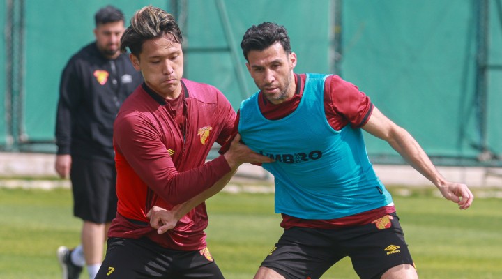 Göztepeli oyuncular antrenmandan önce bayramlaştı.