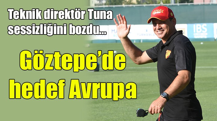 Tuna, Göztepelilerin yeni sezondan dolayı bir endişesi olmaması gerektiğini belirterek, "Sezonu geçen seneden daha iyi bitireceğimizi biliyorum. Geçen yıl son düdükte yaşadığımız bu heyecan iyi bitirdiğimiz için güzel oldu, o sevinci yaşadık ama Göztepe artık ligde kaldığına sevinen bir takım olmamalı. Geçen sezon UEFA Avrupa Ligi'ne katılma hakkı elde eden Yeni Malatyaspor ile düşme hattındaki takımlar arasında son haftalara kadar 6-7 puan fark vardı. Benim hedefim Göztepe'yi 50 yıl sonra Avrupa'ya götürecek bir hedef ama Avrupa demek gerçekleri görmezden gelmek demek değil. Bu takıma dahil olacak yeni transferlerle takımı daha güçlü hale dönüştürerek bu hedefleri yaşatmak demek" diye konuştu. Tuna, ilk planlamaya göre 7 oyuncu transfer etmeyi düşündüklerini, bunların içinde genç yetenekli isimlerin de olacağını belirtip, şu anda santrafor, stoper, sol bek ve orta saha mevkilerinde görüştükleri iyi oyuncular bulunduğunu kaydetti.