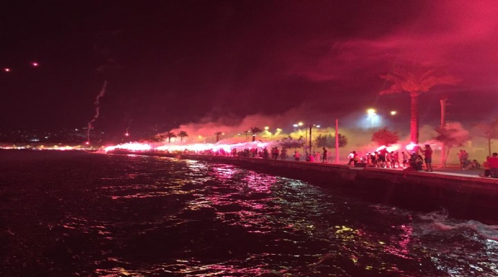 Saat 19.25'te Güzelyalı Sahili'nde toplanmaya başlayan sarı-kırmızılılar saat 22.00'yi gösterdiğinde binlerce meşale yakarak renkli görüntüler oluşturdu. Tezahüratlarla ortalığı inleten taraftarlar meşale şovun ardından havai fişek ve ışık gösterileriyle coştu. İzmir Büyükşehir Belediye Başkanı Tunç Soyer de kutlamalara katıldı. Göztepe Köprüsü'ne gelen Soyer, taraftara üçlü çektirip, tezahüratlarda bulundu. Göztepeli taraftarlar da Soyer'e sevgi gösterilerinde bulundu. Göztepe Başkanı Mehmet Sepil, yönetim kurulu üyeleri, teknik direktör Tamer Tuna ve futbolcular ise bu kez taraftarın arasında yer almadı.