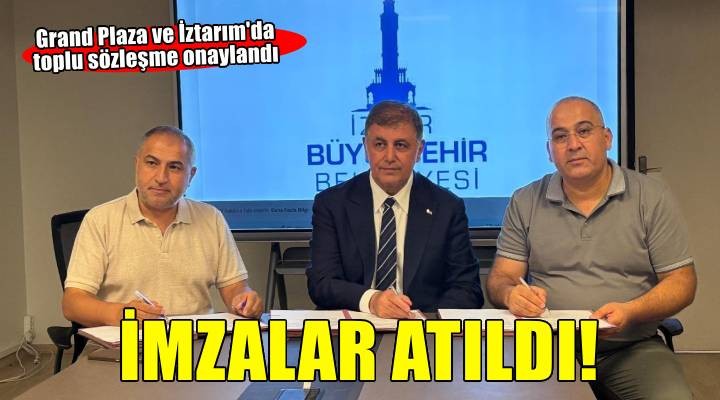 İzmir Büyükşehir Belediyesi ve iştiraklerinde iki toplu sözleşme daha anlaşmayla noktalandı. Grand Plaza'da Türkiye Otel, Lokanta, Dinlenme Yerleri İşçileri Sendikası (TOLEYİS), Türkiye Gıda ve Yardımcı İşçileri (TEKGIDA-İŞ) ve Türkiye, Ticaret, Kooperatif, Eğitim, Büro ve Güzel Sanatlar İşçileri (TEZ-KOOP-İŞ) sendikaları ile İztarım AŞ'de Türkiye TEKGIDA-İŞ ile TEZ-KOOP -İŞ arasında 13 saat süren toplu sözleşme görüşmelerinde mutabatkat sağlandı. Şirket çalışanlarına 1 Temmuz 2025’ten itibaren geçerli olmak üzere yüzde 30, ikinci altı ay TÜFE +1 oranında zam yapıldı. Toplu iş sözleşmesini İzmir Büyükşehir Belediye Başkanı Dr. Cemil Tugay, TEKGIDA-İŞ 7 No'lu Şube Başkanı Ömer Atabey, TOLEYİS İzmir Şube Başkanı Mustafa Çelik, TEZ-KOOP -İŞ 2 No'lu Şube Başkanı Ali Ayna imzaladı.