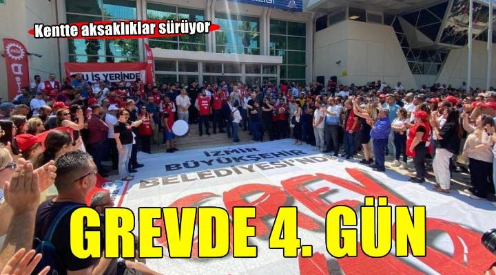 SONKALEİMZİR- İZELMAN ve İZENERJİ bünyesinde çalışan yaklaşık 23 bin İzmir Büyükşehir Belediyesi personelini kapsayan toplu iş sözleşmesi görüşmelerinin sonuçsuz kalması üzerine 29 Mayıs’ta başlayan grev dördüncü gününe girdi.