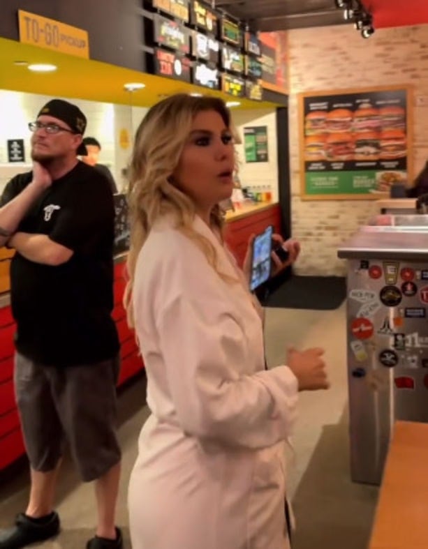 O anları sosyal medyada paylaşan Ergen "Aaa ne büyük ayıp tü tü tü. Bornozla hamburgerciye mi gidilir? Yurt dışında kimsenin umrunda değil. Millet maç izliyordu, kimseye dert olmadı bornozlu bir kadının gelişi" ifadelerini kullandı.