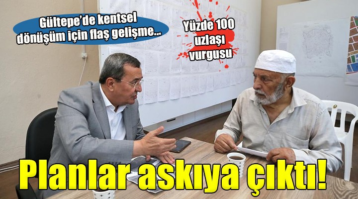 Konak Belediyesi, 14 mahalleyi kapsayan 300 hektarlık Gültepe planlarının uygulama planlarını askıya çıkarmaya başladı. Belediye uygulama imar planı doğrultusunda ilk parselasyon planının çalışmalarını da tamamlayarak askı sürecini başlattı. İlk etapta Mehmet Akif ve Saygı mahallelerinin parselasyon planları, Gültepe Toros Kapalı Pazaryeri ve Sosyal Tesisi içinde kurulan Bilgilendirme Merkezi’nde ve www.konak.bel.tr internet adresinde 12 Haziran itibarıyla 1 ay askıya çıkarıldı. Planları hazırlayan teknik ekip de vatandaşlara bilgi vermek üzere merkezde görevlendirildi.