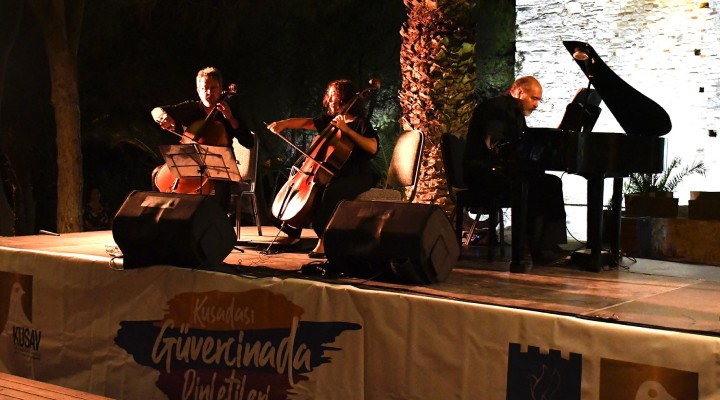 Güvercinada Kalesi’nin eşsiz manzarası eşliğinde gerçekleşen konserde C. Saint Seans, J.Haydn ve Muammer Sun gibi dünyaca ünlü müzisyenlerin eserleri seslendirildi. Viyolonselde Dilay Ra Oygür, piyanoda ise Yasemin Perşembe’nin sahne aldığı konserde ADÜ Devlet Konservatuvarı Öğretim Üyeleri Alexander Makaev ve Özgür Elgün de öğrencilerine eşlik etti. Dinletiyi çok sayıda Kuşadalı ile beraber, KUSAV Başkanı Levent Köylü de dinledi.
