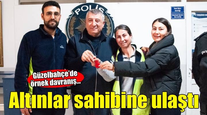Temizlik çalışması sırasında bulduğu keseyi kontrol eden Yeter Gürbüz, içinde altınlar olduğunu fark edince vakit kaybetmeden müdür ve amirlerine haber verdi. Eşiyle birlikte Güzelbahçe İlçe Emniyet Müdürlüğü’ne giden Gürbüz, altınları tutanakla teslim etti. Yapılan çalışmalar sonucunda altınların sahibi Feride ve Mustafa Dere çiftine ulaşıldı ve emniyette taraflar bir araya geldi.