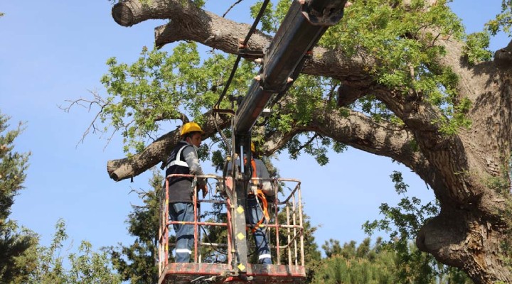 Güzelbahçe Belediyesi ekipleri, içinde çitlembik, zeytin, çam, palamut ve çınar gibi yıllara meydan okumuş birçok türdeki ağacın bakımını yapıyor.
