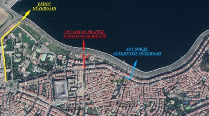 İzmir Büyükşehir Belediyesi İZSU Genel Müdürlüğü, Mithatpaşa Caddesi üzerinden Mustafa Kemal Sahil Bulvarı’na trafik akışını sağlayan 19/1 Sokak’ta (Ahmed Adnan Saygun Sanat Merkezi’nin karşısı) iki ay sürecek bir çalışma başlatıyor. UKOME kararına göre çalışma nedeniyle 27 Ocak Pazartesi gününden itibaren 19/1 Sokak araç trafiğine kapatılacak. Mithatpaşa Caddesi’nden Mustafa Kemal Sahil Bulvarı’na çıkmak isteyen motorlu taşıt sürücüleri, Güzelyalı Parkı’nın karşısındaki 40/1 Sokak’ı kullanabilecek.