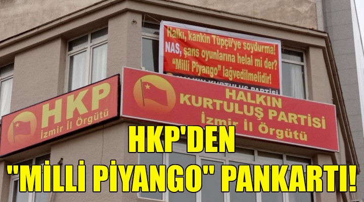 HKP genel merkez, il ve ilçe binalarına asılan pankartta AK Partili Cumhurbaşkanı Recep Tayyip Erdoğan’ın, “Bir Müslüman olarak naslar neyi gerektiriyorsa onu yapmaya devam edeceğim. Hüküm bu” açıklamasına gönderme yapılarak “Halkı, kankin Tüpçü’ye soydurma! NAS, şans oyunlarına helal mi der? “Milli Piyango” lağvedilmelidir!” ifadelerinin bulunduğu pankartlar asıldı.