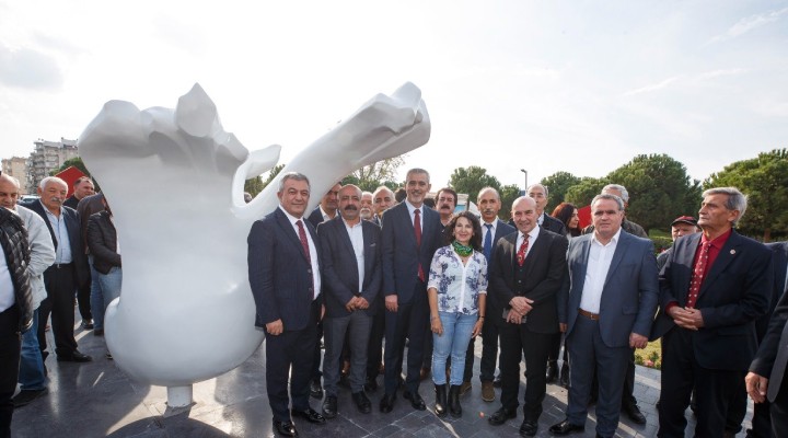 Konuşmaların ardından heykel alkışlar eşliğinde açıldı. Her köşesinde ayrı bir anlam ve öğreti taşıyan heykel düzenlemesini yakından inceleyen Başkan Soyer, heykelin mimarı Esen Keçecioğlu’na teşekkür etti.