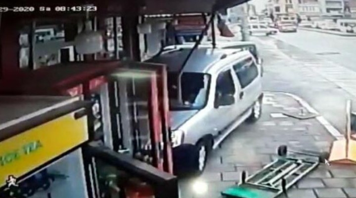 Kaza, saat 08.30 sıralarında Çamlıpınar Mahallesi'nde meydana geldi. Salih A. yönetimindeki 35 KPE 96 plakalı hafif ticari araç, dönüş için manevra yapan taksiyle çarpıştıktan sonra kaldırımı çıkıp, ardından da markete daldı. Bu sırada hafif ticari aracın geldiğini son anda fark eden kişi markete girerek canını kurtardı. Kazada ölen ya da yaralanan olmazken, araçlarda ve markette hasar oluştu. Bu arada kaza anı, saniye saniye marketin güvenlik kamerasına yansıdı.