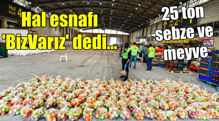 İzmir Büyükşehir Belediye Başkanı Tunç Soyer’in koronavirüs salgınına karşı “BizVarız” adıyla başlattığı koronavirüs salgınının ekonomik ve sosyal etkilerine karşı başlattığı dayanışma kampanyasına esnaf da el verdi. Büyükşehir Belediy esi Sebze Meyve Hali’nin 155 esnafı birleşerek yaklaşık 25 ton sebze meyveyi ihtiyaç sahibi İzmirlilere dağıtılmak üzere gönderdi.