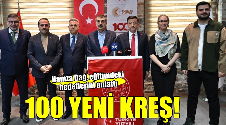AK Parti İzmir Büyükşehir Belediye Başkan Adayı Hamza Dağ, Milli Eğitim Bakanı Yusuf Tekin'in Alsancak Gar Toplantı Salonu'nda yaptığı eğitim yatırımları ile ilgili toplantıda konuştu. Dağ, göreve gelmeleri halinde eğitimde önemli projeleri hayata geçireceklerini vurguladı. Dağ, çocuklara ve velilere yönelik bazı projeleri hayata geçireceklerini, İzmir'e 100 yeni kreş ile Çocuk Gelişim Akademisi'ni kazandıracaklarını, çocuk üniversiteleri kuracaklarını aktardı.