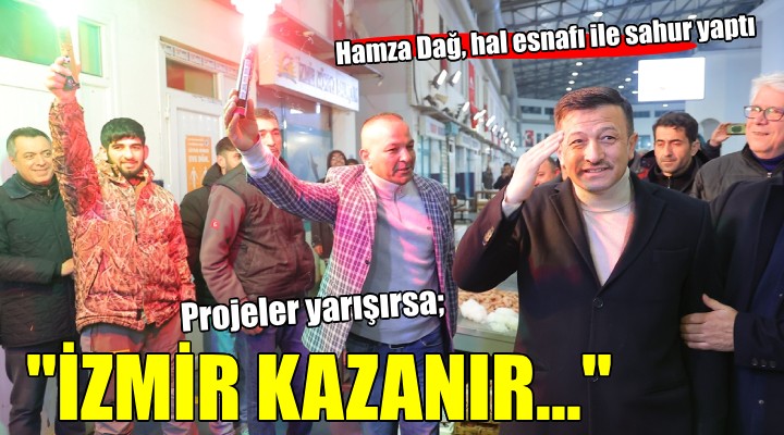 İzmir Büyükşehir Belediyesi Su Ürünleri Hali'ne ziyarette bulunan Dağ, esnafla sohbet etti ve sahur yaptı.
