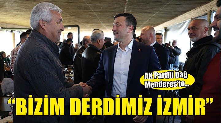 Seçim çalışmalarına devam eden Cumhur İttifakı İzmir Büyükşehir Belediye Başkan Adayı Hamza Dağ, Menderes’te önceki dönem görev yapmış 3 Kademe İlçe Yöneticileri ve teşkilatıyla bir araya geldi. Cumhur İttifakı Menderes Belediye Başkan Adayı Sinan Akdeniz ve MHP İlçe Başkanı Önder Böncü de programda Hamza Dağ’a eşlik etti. Burada bir konuşma gerçekleştiren Hamza Dağ, “İzmir benim için bir şehirden daha fazlasıdır. İzmir benim evimdir, yuvamdır. Her köşesi her karış toprağı benim için ayrı bir özeldir. Taşıyla toprağıyla değerlidir.” dedi,