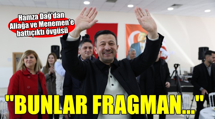 Hamza Dağ, ilçedeki bir düğün salonunda düzenlenen etkinlikte, Aliağa Belediye Başkanı Serkan Acar'ın ilçede hükümetin de verdiği destekle önemli projelere imza attığını kaydetti. Aliağa'da 31 Mart'ta kazananın eser ve hizmet belediyeciliği olacağına inandığını anlatan Dağ, şöyle devam etti: