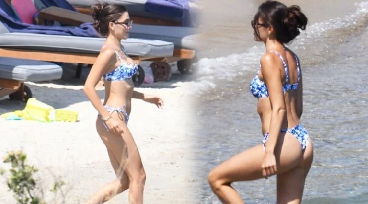 Önceki gün Türkbükü'nde kaldıkları evin iskelesine inen Hande Erçel, deniz keyfi yaparken görüntülendi.