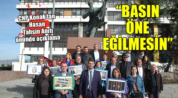 SONKALEİZMİR-İzmir'de ilk kurşunu sıkarak Türk direnişini başlatan şehit gazeteci Hasan Tahsin'in İlk Kurşun Anıtı'nın yer aldığı Konak Meydanı'nda yapılan 'Basın öne eğilmesin' konulu basın açıklamasına CHP Konak İlçe örgütü ve partililer katıldı.