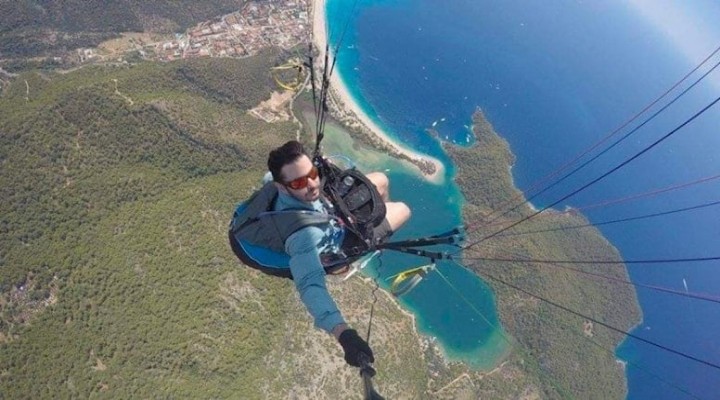 Muğla'nın Fethiye ilçesi Ölüdeniz Mahallesi’nde yamaç paraşütü eğitimi veren milli paraşütçülerden Orkut Baysal ile eğitime katılan Andaç Ünsal öğle saatlerinde Babadağ'daki bin 700 metre pistinden ikili olarak atladı.