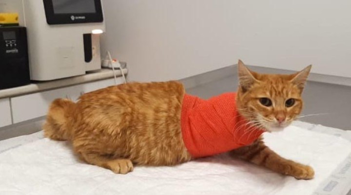 Geçen 1 Aralık'ta, Ertuğrul Mahallesi'nde, ön sağ patisinin üzerine basamadığı için sekerek yürüyen sokak kedisini fark eden bir hayvansever, onu veterinere götürdü. Veteriner Onur Candan, kedinin bacağında bir yara olduğunu belirleyip, röntgenini çekti. Röntgen filminde, kedinin bacağında saçma olduğu tespit edildi. Havalı tüfekle vurulduğu ve uzunca bir süredir de bu şekilde yaralı olarak gezdiği anlaşılan kedinin, bacağının hissiyatını kaybettiği belirlendi. Bunun üzerine 6 aylık olduğu sanılan kedinin sağ bacağı ameliyatla ampute edildi. Kedinin bundan sonra yaşamına 3 bacak ile devam etmek zorunda kalacağını belirten Veteriner Onur Candan, "Düzenli olarak kendi kedisinin tedavisini burada yaptıran bir hayvansever, yürümekte güçlük çeken kediyi bulup, bize getirdi. Önce üzerine basamadığı sağ bacağında, bir kırık olabileceğini düşündük. Detaylı incelemede kedinin yarasının olduğunu fark ettik. Röntgen çekince de havalı tüfek saçması gördük. Ancak, 6-7 gün bu şekilde yaralı halde gezdiğini düşündüğümüz kedi için yapacak bir şey yoktu. Bacağını kesmek zorunda kaldık. Bacağı kesmeseydik, yarası her geçen gün daha da açılacak ve daha büyük zorluklara maruz kalacaktı. Kediyi kliniğimize getiren hayvanseverimiz, bir çiftliğe götürüp, kakacağını söyledi" dedi.