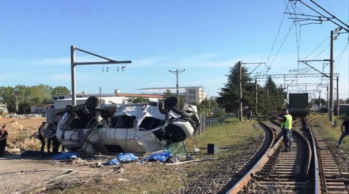 Edirne’den Çerkezköy yönüne giden 13001 sefer sayılı yük treni, hemzemin geçitte henüz sürücüsü belirlenemeyen 59 ADJ 755 plakalı fabrika servis minibüsüne çarptı. Trenin bir süre önünde sürüklediği minibüsteki 6 kişi öldü, 6 kişi de yaralandı.