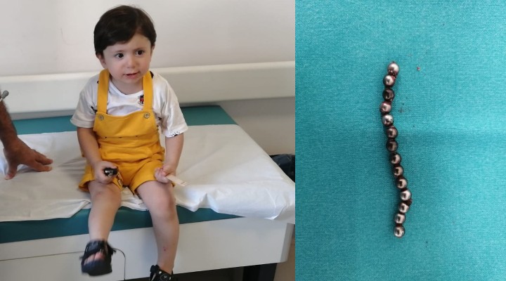 Batman Eğitim ve Araştırma Hastanesi'ne getirilen 20 aylık Ahmet Arif Ataş'ın, yapılan kontrolde, 14 mıknatıs top yuttuğu belirlendi. Bunun üzerine Ahmet bebek, hemen ameliyata alındı. Çocuk Cerrahisi Uzmanı Opr. Dr. Mucahit Tan, operasyonu başarıyla gerçekleştirdi.