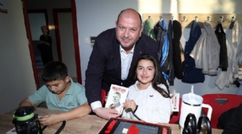 Kontak – Yenilikçi Öğrenme Merkezi’ndeki eğitim programına katılan İzmir Büyükşehir Belediyesi Yuvamız İzmir Çocuk Etkinlik Merkezleri bünyesindeki öğrenciler burada sürpriz bir buluşmaya tanık oldu. Merkezi ziyaret eden Büyükşehir Belediye Başkanı Dr. Cemil Tugay, çocukların 20 Kasım Dünya Çocuk Hakları Günü’nü kutladı. Başkan Tugay’a ziyareti sırasında Kentimiz İzmir Derneği Yönetim Kurulu Başkanı Uğur Yüce de eşlik etti. Kontak Yenilikçi Öğrenme Merkezi’nde çocukların robotik kodlamadan astronomiye, sayısal bilimlerden güzel sanatlara kadar çok geniş bir yelpazede ufuk açan etkinliklere katıldığını ve bu sosyal girişimi çok değerli bulduğunu ifade eden Başkan Tugay, emeği geçenlere teşekkür etti.