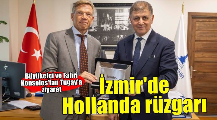 Hollanda’nın Ankara Büyükelçisi Joep Wijnands ve Hollanda İzmir Fahri Konsolosu Oğuz Özkardeş, İzmir Büyükşehir Belediye Başkanı Dr. Cemil Tugay’ı ziyaret etti. Ziyarette, İzmir Büyükşehir Belediyesi Genel Sekreter Yardımcısı ve ESHOT Genel Müdürü Övünç Özgen ile Dış İlişkiler Dairesi Başkanı Selin Sayın Kapancı ve belediye bürokratları da hazır bulundu. Başkan Tugay, görüşmede İzmir’in mali yapısı ile dış finansman sağlanarak hayata geçirilmesi hedeflenen büyük altyapı projeleri hakkında bilgi verdi. Ayrıca çevresel sürdürülebilirlik hedefleri doğrultusunda yürütülen çalışmalar da ele alındı. Hollanda’nın deneyiminden yararlanılarak İzmir’de ortak uygulamaların hayata geçirilmesi üzerine fikir alışverişinde bulunuldu. İki ülke arasındaki dostane ilişkilerin yerel düzeyde güçlendirilmesi hedefi doğrultusunda su yönetimi, Körfez temizliği ve tarım gibi alanlarda neler yapılabileceği konuşuldu.