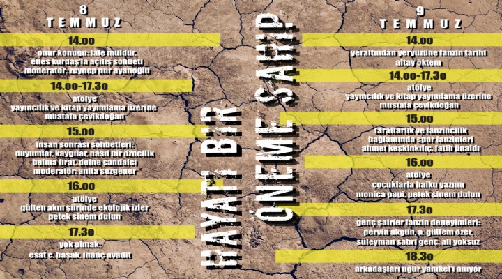 Zeynep Nur Ayanoğlu moderatörlüğünde, onur konuğu Lale Müldür’ün Enes Kurdaş ile yapacağı “Hayati Öneme Sahip” başlıklı söyleşiyle açılacak program, Türkiye’deki sanatçılara “politik bir çerçevede, insan soyunun tüm sorunlarıyla birlikte ekoloji odağında genişleyen” bir dergi çağrısı ile kapanacak. Herkese açık ve ücretsiz yapılacak atölye çalışmaları 25 kişilik kontenjana sahip. Katılmak isteyenler, www.izmir.art sitesini ziyaret ederek veya 232. 293 39 38’i arayarak başvuru yapabilecek.
