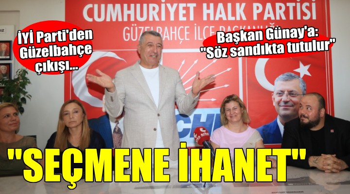 SONKALE'ye konuşan İYİ Parti İzmir İl Başkanı Ülkü Doğan, Günay'ın "Seçim öncesi 15'te 15 sözü vermiştik. Şimdi tuttuk" açıklamasını eleştirirken, "Güzelbahçe halkı oyunu İYİ Parti'ye verdi. İYİ Parti'nin oylarıyla meclise giren bir kişiyi kendi arasına katarak '15'te 15 sözü verdik. Sözümüzü tutuyoruz' demek siyasi etiğe uygun değil. Söz tutmak için mi transfer yapılır bilmiyorum. Söz sandıkta tutulur, sonradan olmaz. Bir ilçede muhalefet sesinin olmaması övünülecek bir şey değil" dedi.