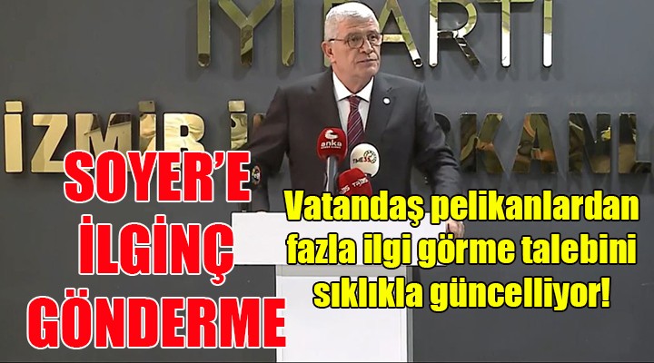 Dervişoğlu, CHP ile görüş ayrılıkları olabileceğini ancak bunun Millet İttifakı'na zarar vermeyeceğini belirtirken, İzmir Büyükşehir Belediye Başkanı Tunç Soyer'e de ilginç bir gönderme yaptı. Soyer'in seçimin ardından "artık herkesin başkanı olduğu" açıklamasını anımsatan Dervişoğlu, "Sandıklar açıldığı andan itibaren fiilen bitmişti. O ittifakın ruhu yaşamaktadır. Millet bizden ittifakı sürdürmemizi istiyor. Cumhuriyet Halk Partisi'yle görüş ayrılıklarımız olabilir bu Millet İttifakı'na zarar vermez. Sayın Tunç Soyer söyledi. Ben sadece İzmir'de yaşayan insanların değil pelikanların bile belediye başkanıyım dedi. Vatandaşlarımız pelikanlardan daha fazla ilgi görme talebini sıklıkla güncelliyor" dedi.