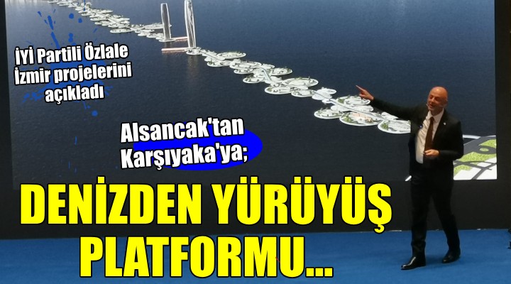 İYİ Parti İzmir Büyükşehir Belediye Başkan Adayı Ümit Özlale genel başkan Akşener'in konuşmasının ardından sunumuna başladı. İzmir için projelerini açıklayan ve sorunlara çözüm önerilerini anlatan Özlale'nin Alsancak ile Karşıyaka arasını bağlayacak Karşıyaka Alsancak Yürüyüş Platformu Projesi dikkat çekti.
