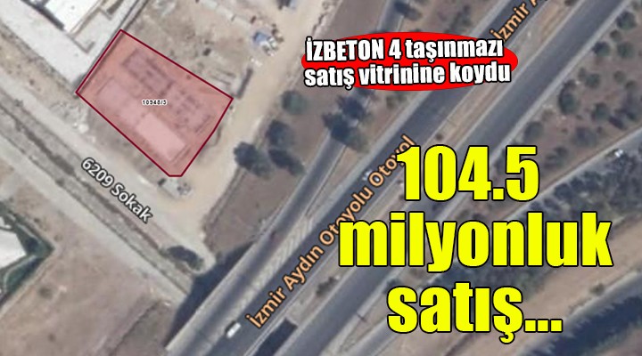 Sabriye TOKLU/SONKALEİZMİR-İZBETON Genel Müdürlüğü mülkiyetindeki 4 taşınmazı satış vitrinine koydu. Bornova Işıklar Mahallesi 10948 ada 3 parseldeki 4 taşınmaz için toplamda 104 milyon 546 bin TL 500 TL tahmini bedel belirlendi. Satış ihalesinin 23 Haziran Pazartesi Günü saat 13.00'te yapılacağı duyuruldu.