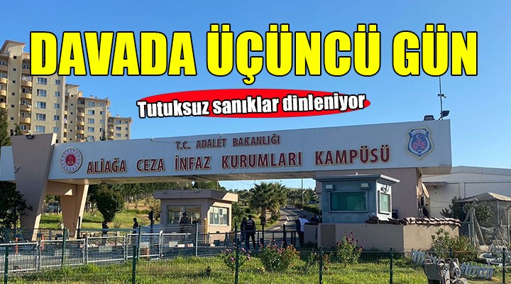 Davanın bugün Aliağa Ceza İnfaz Kurumları Kampüsü'nde mahkeme salonundaki 3'üncü oturumunda tutuksuz sanıkların ifadelerinin alınmasına devam edilecek. Sanıkların savunmalarının tamamlanmasının ardından şikayetçi beyanları ve avukatlarının savunmalarına geçilecek.