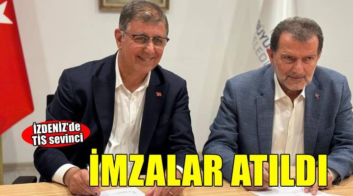 İZDENİZ AŞ ve Türk-İş’e bağlı Türkiye Denizciler Sendikası arasında yapılan toplu sözleşme görüşmelerinde mutabakat sağlandı. 4 ay süren görüşmeler sonucunda, İzmir’de deniz ulaşımını sağlayan İZDENİZ şirketi çalışanlarına 1 Ocak 2025’ten itibaren geçerli olmak üzere yüzde 30 oranında zam yapıldı. Toplu iş sözleşmesini İzmir Büyükşehir Belediye Başkanı Dr. Cemil Tugay ve Türkiye Denizciler Sendikası Genel Başkanı İrfan Mete imzaladı.