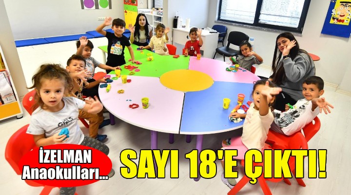 İZELMAN Anaokulları; Aliağa, Ataşehir, Balçova Selçuk Yaşar, Beydağ, Bornova, Bornova İnönü, Buca Evka-1, Buca Fevziye-İsmail Topcan, Dikili, Egekent, Evka-2 Sabiha Gökçen, Evka-4 Yeşiltepe, Gaziemir Adnan Oğuz Akyarlı, Girne Latife Hanım, Görece, Güzelyalı Nene Hatun, Kiraz ve Torbalı Üstün Kreş ve Anaokulu Eğitim Merkezi olmak üzere 18 okulda hizmet veriyor.