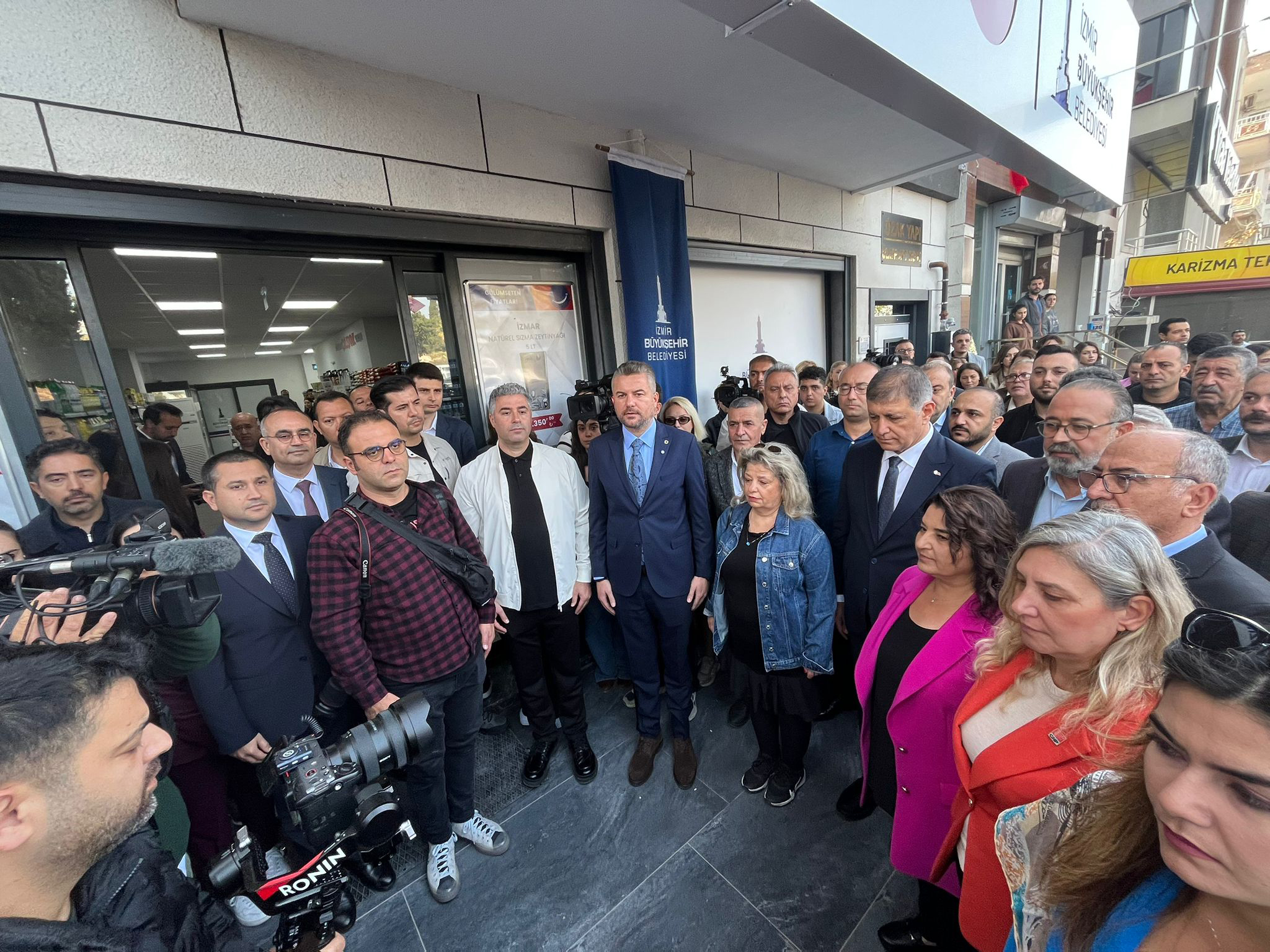 Türkü ERBİL/SONKALEİZMİR- İzmir'in tanzim satış marketi İZMAR, ekonomik ve güvenli gıdayı İzmirlilerle buluşturmaya devam ediyor. İZMAR, 13 ve 14'üncü şubesi ile Bucalılarla buluştu. Bucalılara hizmet verecek marketlerin açılış törenine İzmir Büyükşehir Belediye Başkanı Cemil Tugay, Buca Belediye Başkanı Görkem Duman, CHP İzmir İl Başkanı Çağatay Güç, meclis üyeleri, belediye bürokratları ve Bucalılar katıldı.