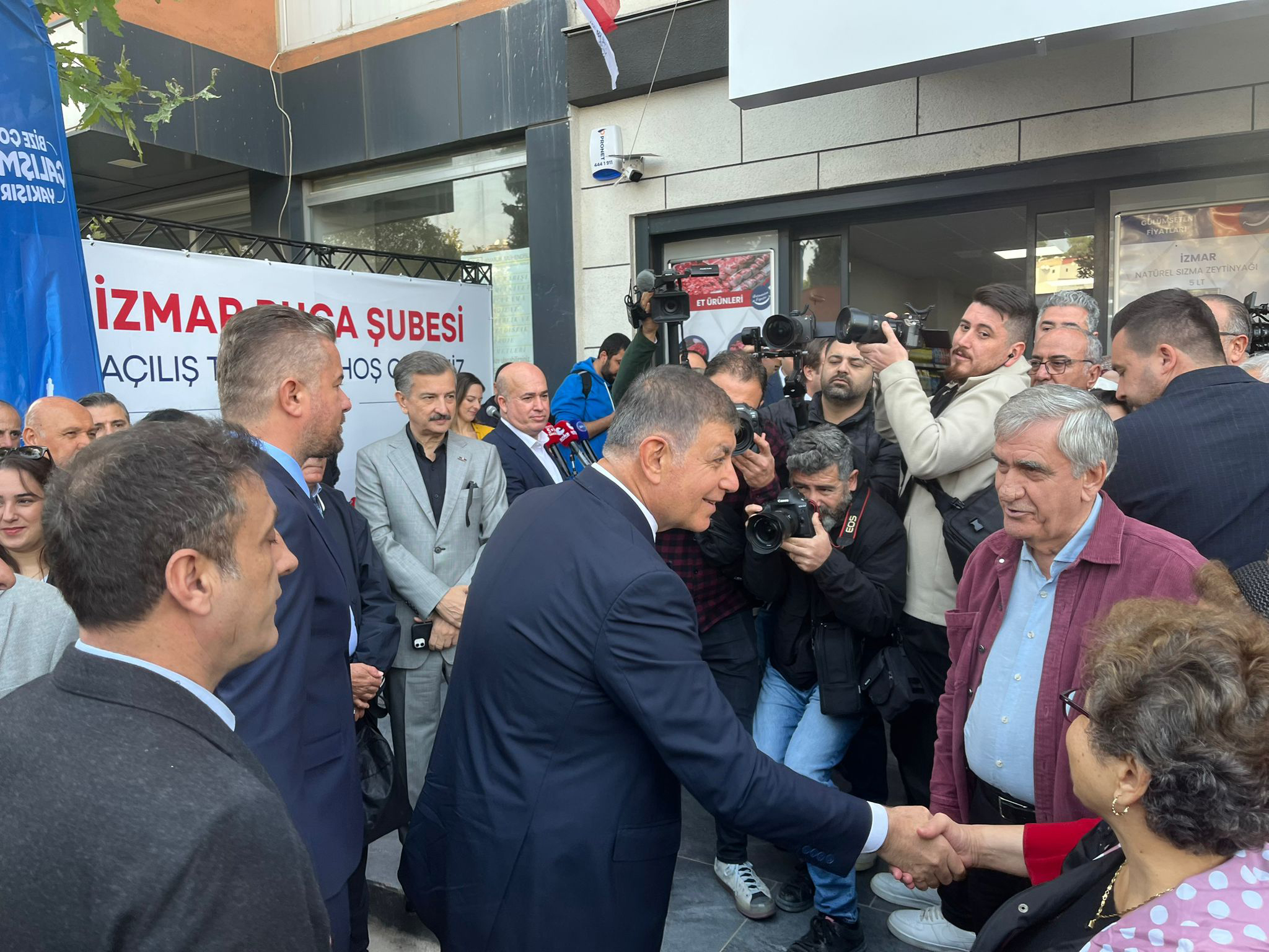 İZMAR 13 ve 14. şubeleri ile Buca'da hizmet verecek. Ucuz ve güvenli gıdayı Bucalılar ile buluşturan marketlerin açılışında konuşan İzmir Büyükşehir Belediye Başkanı Cemil Tugay, "Enflasyon, gıda ve barınma konusunda bel büküyor. Bu marketler bizim için önemli. Buralarda gıdayı hem üreten hem tüketen için politikalar ortaya koymaya çalışıyoruz" dedi