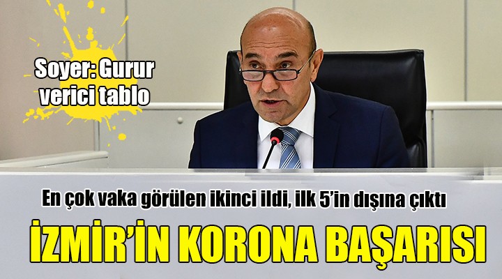 İzmir Büyükşehir Belediye Başkanı Tunç Soyer de pandemi sürecindeki başarının İzmirliler'in başarısı olduğuna vurgu yaptı. Soyer, "Gurur duyacağımız bir tablo. Salgında büyük acılar yaşandı ancak güçlü bir dayanışma ortaya çıktı. Türkiye'ye örnek olacak bir dayanışma ile İzmir farkını gösterdi. Salgın hala etkisini devam ettiriyor. Gevşememek çok önemli. Hijyen, sosyal mesafe ve maske kuralına uymaya devam etmeliyiz" dedi.