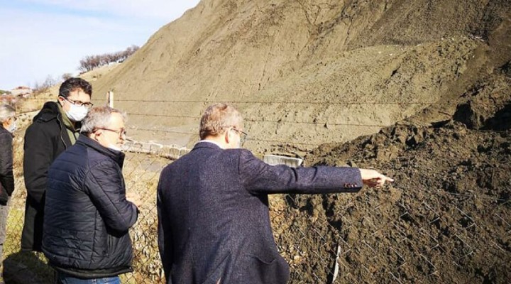 CHP Balıkesir Milletvekili Ensar Aytekin, Ayvalık Belediye Başkanı Mesut Ergin, CHP Ayvalık İlçe Başkanı Hüseyin Şamal ile birlikte Ayvalık ilçesine bağlı Karaayıt Köyü'nün yakınlarında faaliyet gösteren demir madeninin çöken atık havuzunda incelemelerde bulundu.