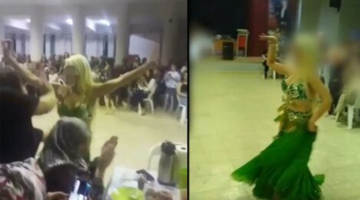 Bursa’da Çalı İmam Hatip Ortaokulu’na ait salonunda düzenlenen etkinlikte dansöz oynatıldı.