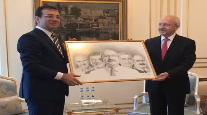 Kılıçdaroğlu’na CHP İstanbul İl Başkanı Canan Kaftancıoğlu da eşlik etti. İmamoğlu Kılıçdaroğlu’na CHP belediye başkanlarının Kılıçdaroğlu ile birlikte yer aldığı kara kalem bir tablo hediye etti. İmamoğlu Kılıçdaroğlu’na tabloyu takdim ederken diğer büyükşehir Belediye Başkanlarının tabloda olmayışını, “Samsun’a beraber gittiğimiz bir genç ressam resim yapmak istiyorum dedi biz onu davet ettik. 23 Haziran’dan önce Şişli’de sergisini açtı. Kara kalem çalışan bir kardeşimiz ve muazzam çalışan birisi. Dedi ki kağıdım bu kadar yoksa herkesi çizecektim. Çizemediklerim beni affetsin.”