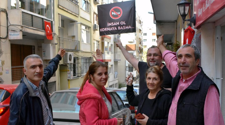 Hatay ile Güzelyalı semtlerini birbirine bağladığı için araç sürücüleri tarafından yoğun olarak kullanılan ve iki aracın yan yana geçmesinin mümkün olmadığı Göztepe semti 96'ncı sokakta, korna çalan sürücülerin yarattığı gürültü kirliliğine mahalle sakinleri çözüm aramaya başladı. Özellikle İzmir'in yazlık ilçeleri olan Çeşme ve Seferihisar yönüne gidecek olan araçların da bu yolu kullanmasıyla, hafta sonları başta olmak üzere trafikte tartışmalar da kaçınılmaz hale gelirken, sorunu çözmek için mahalle sakinleri bir araya geldi. 'Birlikten kuvvet doğar' diyen sakinler kendi aralarında para toplayıp, gürültü kirliliğinin önüne geçmek için afiş hazırlattı. Üzerinde 'İnsan ol, kornoya basma' yazılı afişi, evden eve ip gerip sokağın en görünen yerine asan mahalle sakinleri, sürücülerle tartışmak yerine onları uyarmanın kolay yolunu buldu. Afişin asıldığı günden beri sokakta sessizliğin hüküm sürdüğünü söyleyen sakinler, "Rahatsız olan herkes yapsın, tüm Türkiye'ye örnek olsun. Başka türlü anlamıyorlar" dedi.