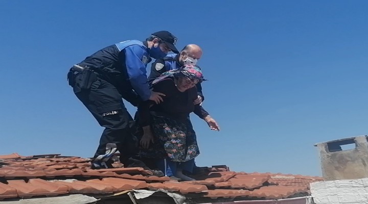 Polisi karşısında gören Safiye Çayır, çatının sızdırdığını söyleyerek, kiremitleri düzenlediğini belirtti. Polisler, kadını çatıdan indirmek için bir süre konuştu. Çakır, daha sonra çatıdan indirilerek evine götürüldü.