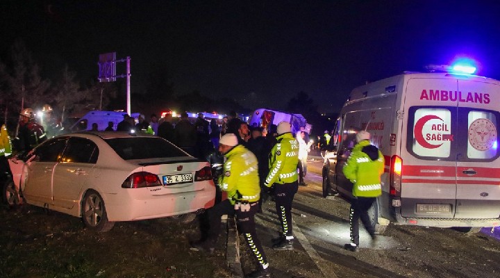 "Kazada servis aracında bulunan 25 vatandaşımız, otomobilde bulunan 3 vatandaşımız olmak üzere 28 vatandaşımız yaralandı. Şu an itibarıyla yaralıların tamamının hastanelerimize sevki sağlandı. Arkadaşlarımızın verdiği bilgiye göre 1 yaralının durumu ağır görünüyor. Herhangi bir ölü bilgimiz şu an itibarıyla yok. Yaralıların tamamına geçmiş olsun diliyorum."