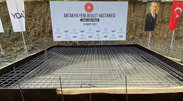 Ardından Defne'deki aynı sahnenin Antakya'da da yaşandığı ortaya çıktı. Antakya Yeni Devlet Hastanesi'nin temeli yine Defne'deki gibi küçük bir alana beton dökülerek atıldı.