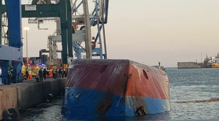 İspanya'nın doğrusunda yer alan Castellon Limanı'nda 5'i Türk olmak üzere toplam 9 mürettebatı bulunan “Nazmiye Ana” adlı Panama bandıralı konteyner gemisi dün akşam yük alımı sırasında dengesini kaybederek battı.