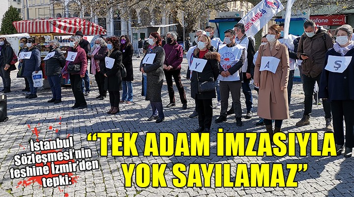 SONKALEİZMİR-Kadınlara Yönelik Şiddet ve Aile İçi Şiddetin Önlenmesi ve Bunlarla Mücadeleye İlişkin Avrupa Konseyi Sözleşmesi'nin Cumhurbaşkanlığı kararnamesiyle feshedilmesine İzmir'den tepki geldi. Atatürkçü Düşünce Derneği İzmir şubelerince Konak Atatürk Meydanı'nda düzenlenen basın açıklamasına yaklaşık 50 kadın katılırken, Türkiye'de katledilen kadınların isimlerinin yazılı olduğu bir pankart açıldı ve "İstanbul Sözleşmesi Yaşatır" mesajı verildi. Basın açıklaması etkinliği de Danıştay kararı ile okullardan çıkarılan Andımız'ın okunmasıyla başladı.