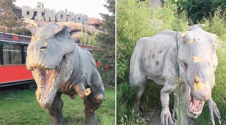 Dinozor şeklindeki oyuncaklar kırıldı.