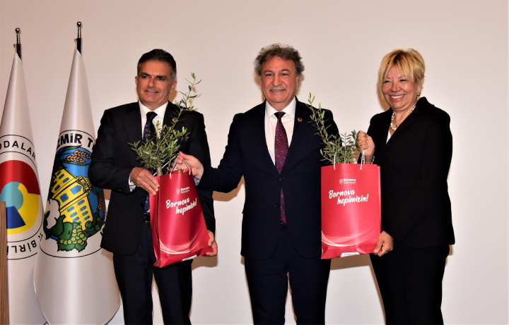 Toplantının sonunda Bornova Belediye Başkanı Dr. Mustafa İduğ, İTB Yönetim Kurulu ve Meclis Üyelerine nesilden nesile kültürel miras olarak aktarılan ve Bornova Belediyesi’nin Kayadibi’nde kurduğu Atalık Tohum Bahçesi’nde yetiştirilen Bornova kınalı bamyası ve karışık sebzelerden oluşan tohumları ve zeytin fidanı hediye etti.
